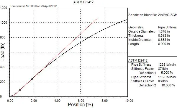 ASTM D2412 is a testing standard used to determine the stiffness and load deflection of plastic pipe. This summary is intended to help you understand the basic procedure and equipment required to complete this test with accuracy. For a complete description of the test, please refer to ASTM D2412.