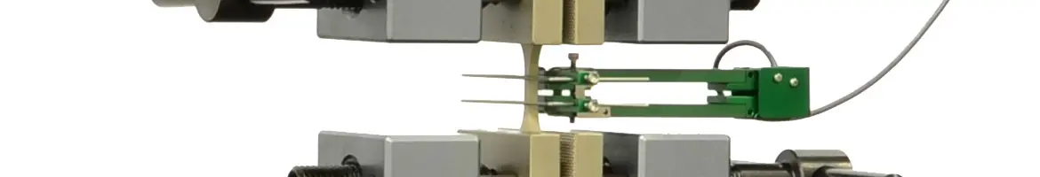 The specimen geometry also determines the need for an extensometer. For example, dumbbell specimens do not have uniform widths so there will be errors when both the wide and narrow sections of the dumbbell shaped specimen elongate at different rates if crosshead displacement data is used for strain.