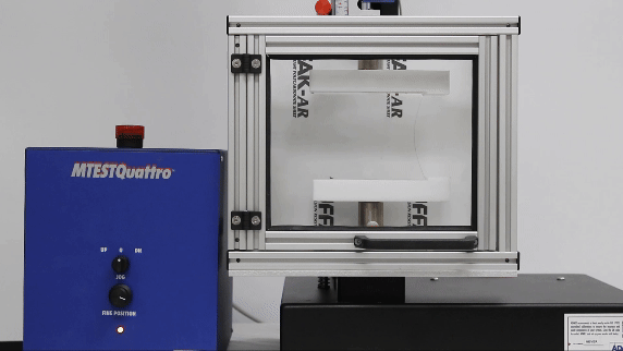 ADMET recently configured an eXpert 7601 single column testing system with a safety enclosure so a customer could safely conduct bend testing on thin glass specimens without fear of broken shards causing injury or damage in the lab.